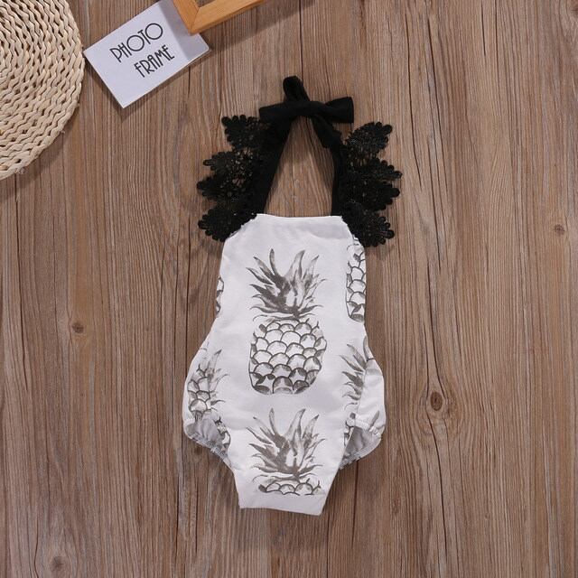 レースホルターロンパース★パイン柄
